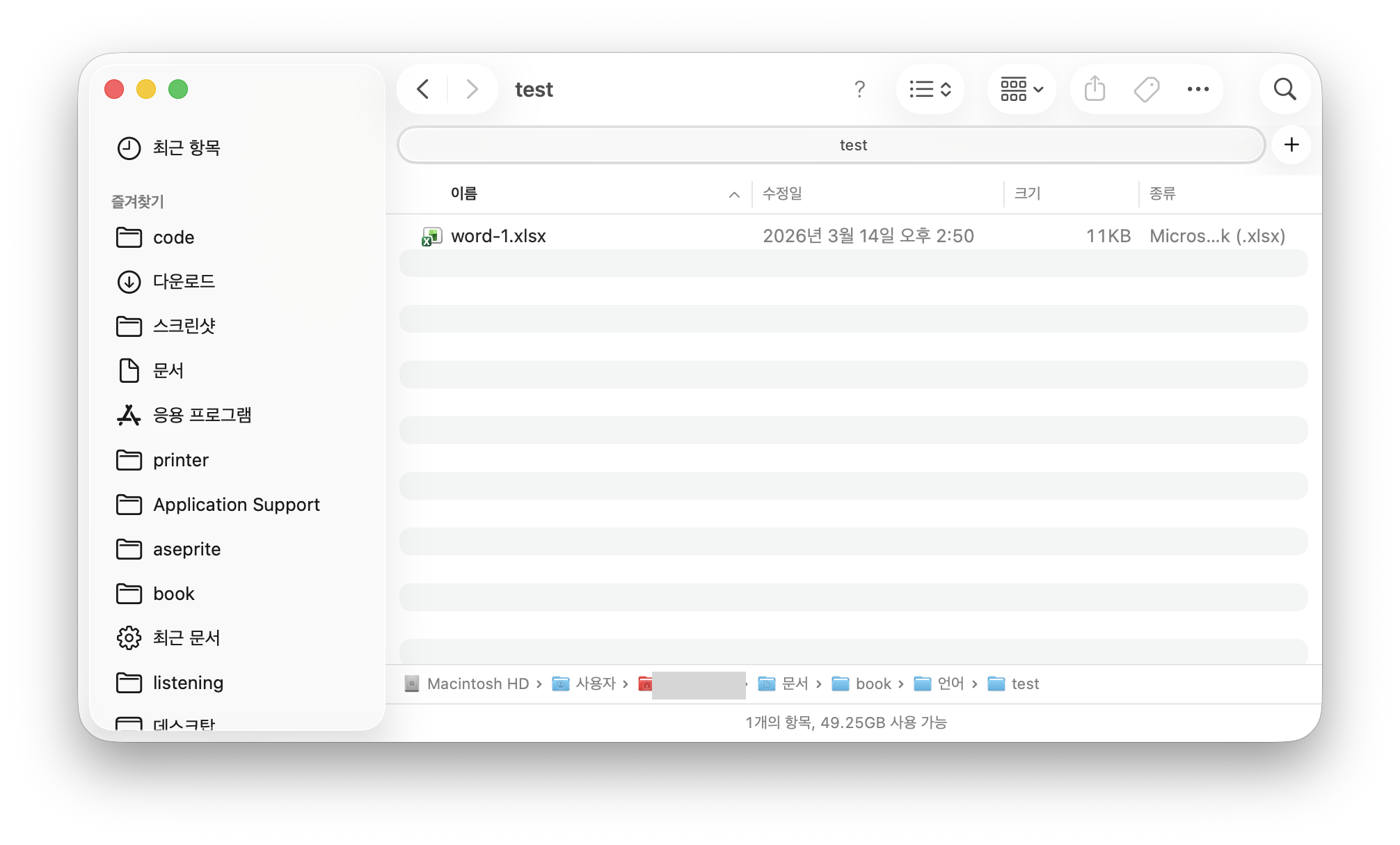 팁: Command + Shift + G 다이얼로그는 이전 입력값들을 기억하므로, 자주 접근하는 경로는 더 빠르게 불러올 수 있습니다.